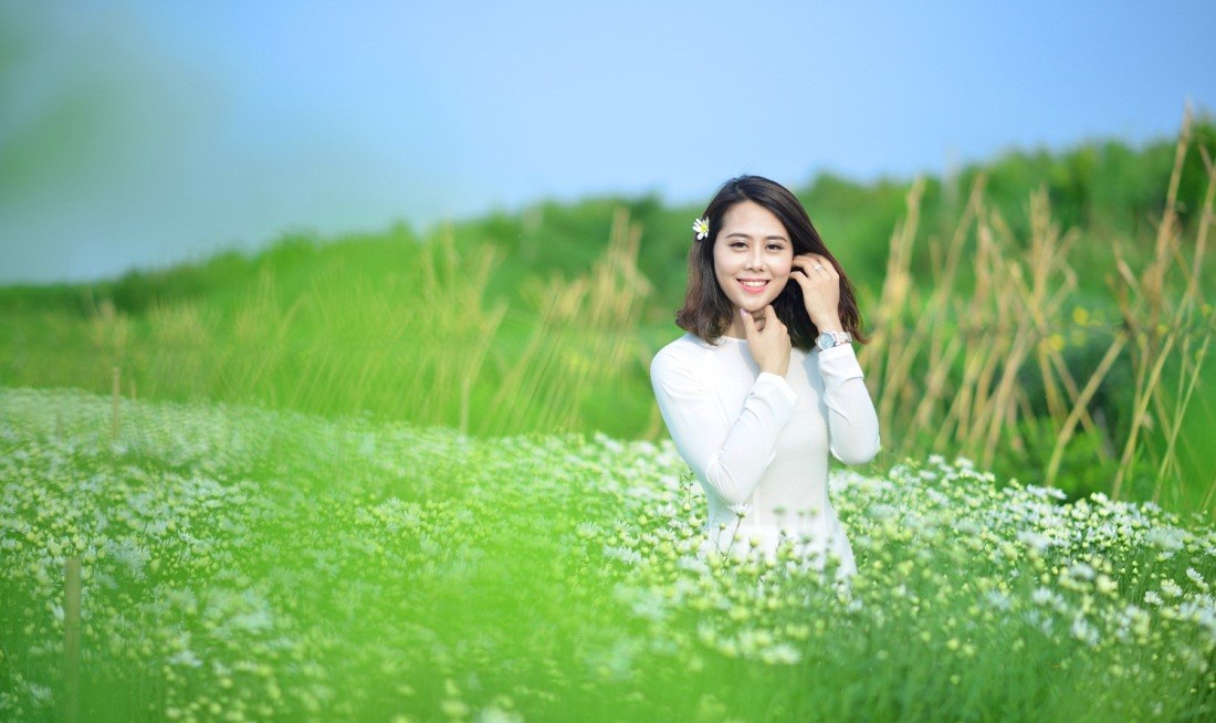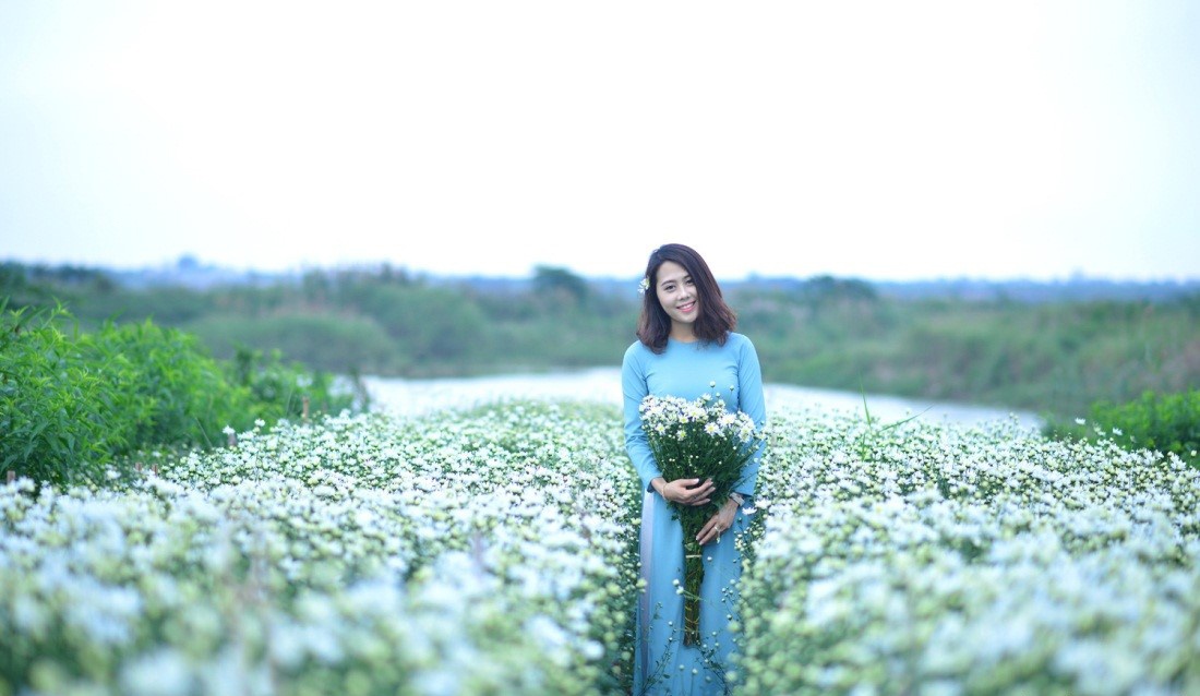 Thời điểm này, cúc họa mi đang thu hút nhiều bạn trẻ đến cánh đồng chụp ảnh kỷ niệm.