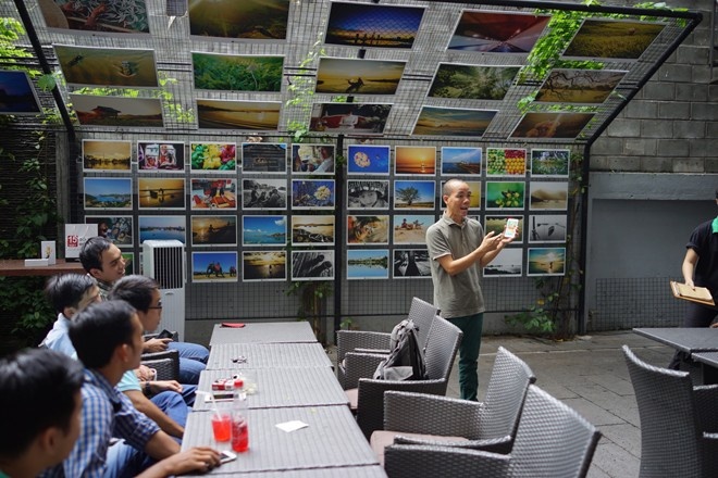 | Anh Trần Mạnh Hiệp trình diễn các tính năng trên iPhone 6S trong một buổi offline. Ảnh: Đức Trung. |