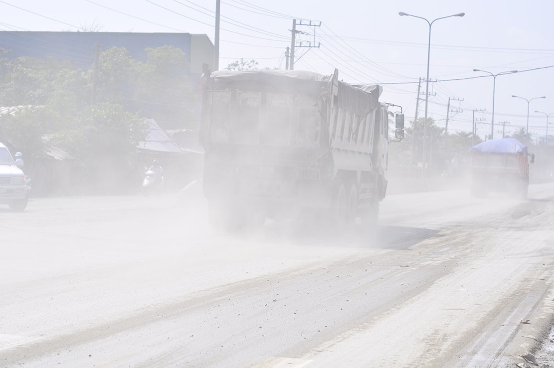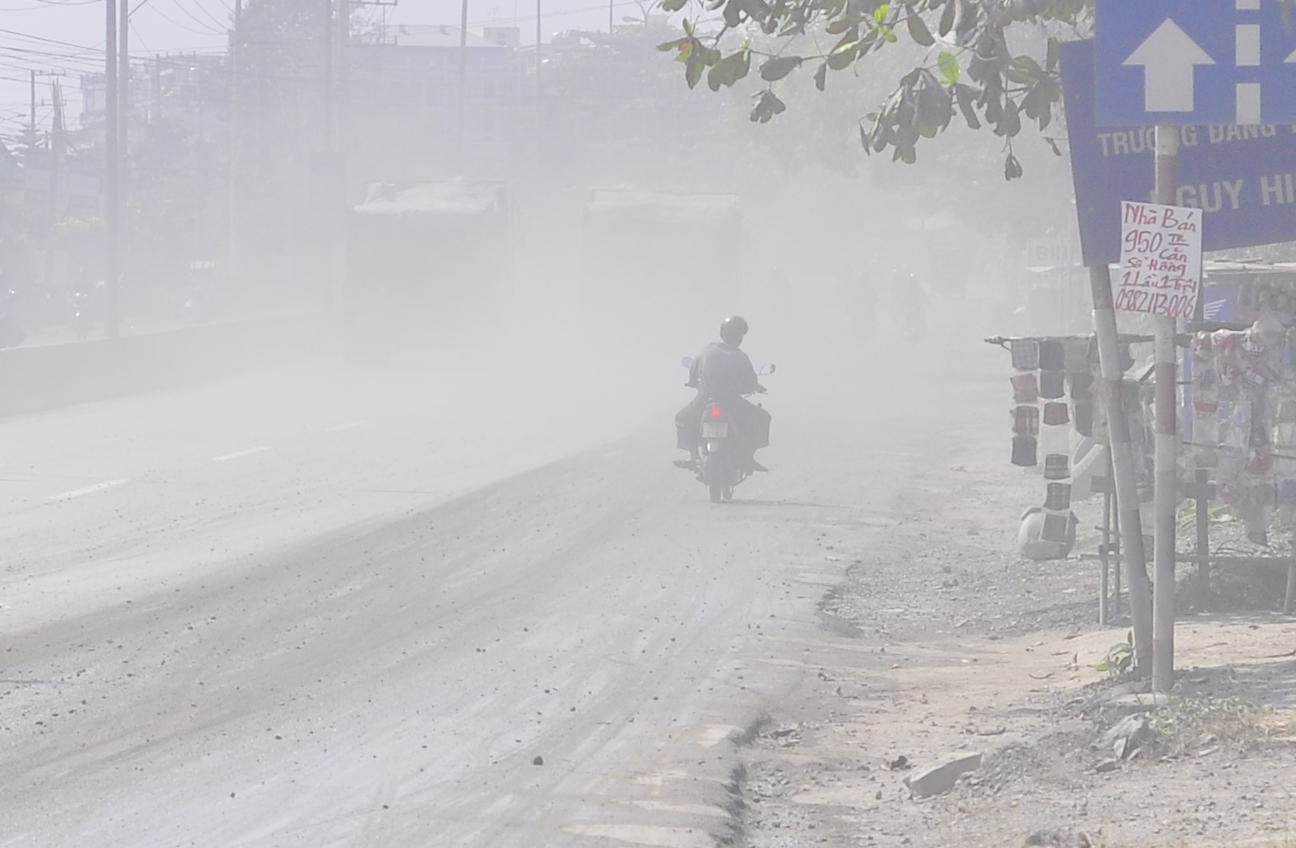 | Nhiều năm qua, quốc lộ 1K đoạn qua địa bàn thị xã Dĩ An, Bình Dương chìm trong bụi bẩn. Theo người dân, "thủ phạm" gây nên tình trạng này là những chiếc xe tải. |