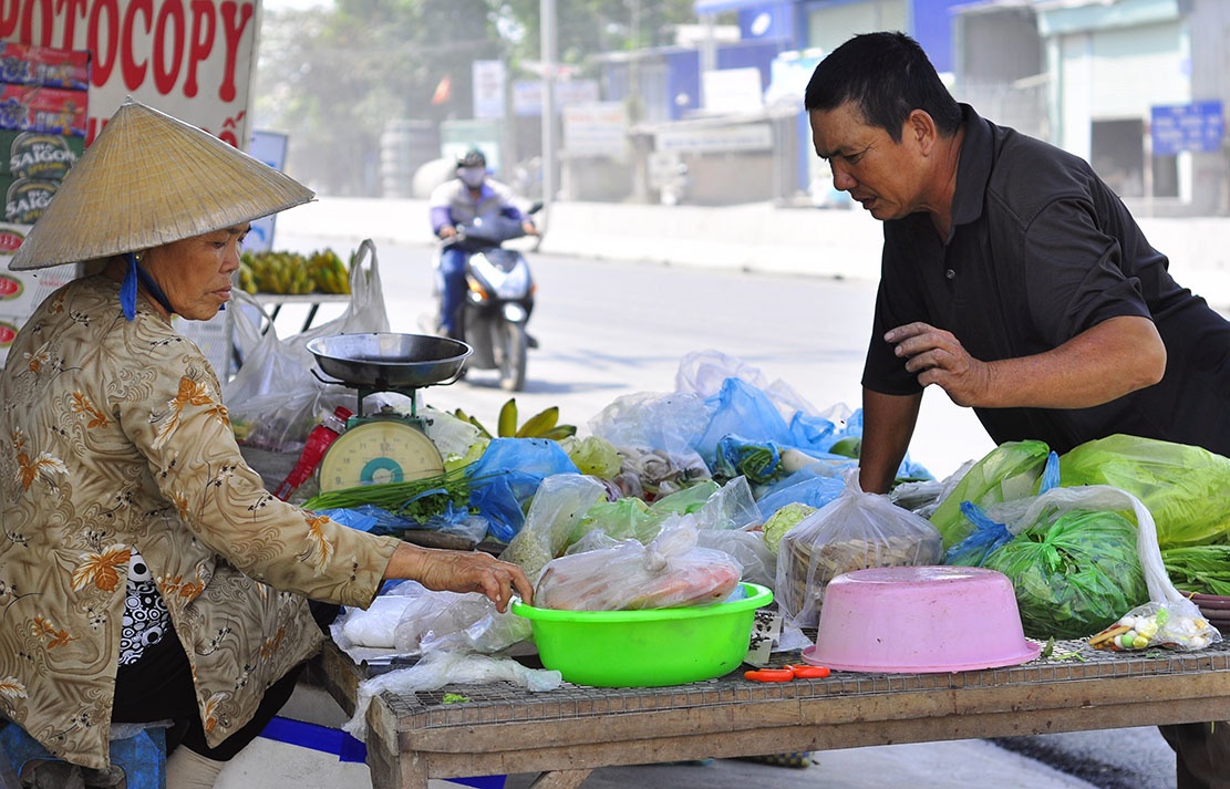 | Để tiếp tục với nghề bán thực phẩm, vợ chồng ông Nguyễn Văn Bình, ngụ khu phố Tây An, phường Tân Đông Hiệp (thị xã Dĩ An) phải cho hàng hóa vào các túi nilon để tránh bụi. Ông Bình cho biết, cá, thịt, củ quả... được gói kỹ nhưng người mua ngày càng vắng. Nhiều khách hàng thấy thế vẫn không dám mua. |