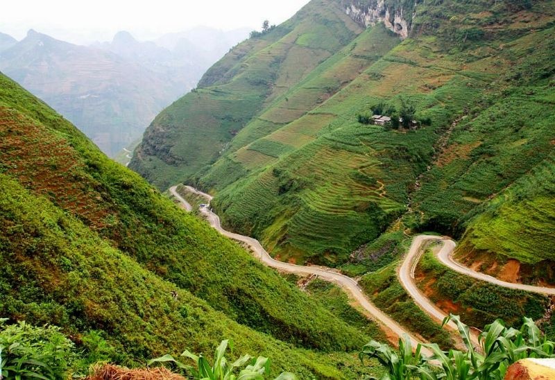Khung cảnh xung quanh đầy quyến rũ nhưng chúng tôi chẳng dám thưởng thức mà phải luôn dán mắt về phía trước. Cứ vài chục mét lại có một khúc quanh, lơ là là rớt đèo như chơi. Cứ chạy đến khi thấy ngôi nhà nằm ở góc vực của đèo là biết đã chinh phục đỉnh. Chẳng bõ công cầm lái đoạn đường nguy hiểm này khi thiên nhiên đầy ngoạn mục hiện ra trước mắt.