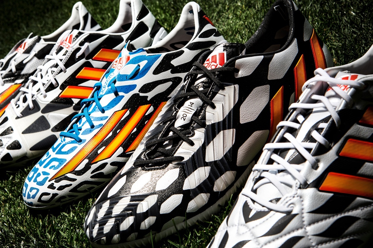 | Bộ sưu tập giày thể thao Battle Pack gồm 5 dòng giày nitrocharge, adizero f50, adizero f50 Messi, predator Instinct và 11pro. |