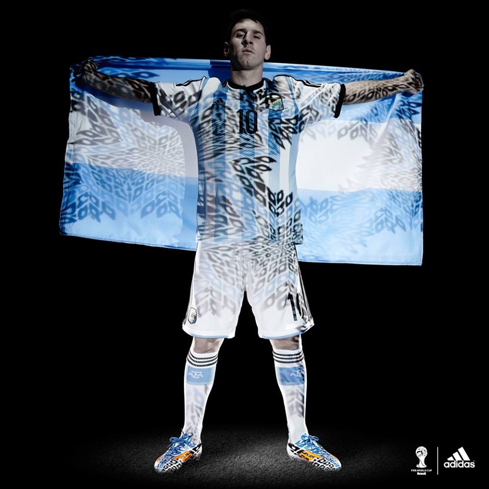 | Siêu tiền đạo Leo Messi sử dụng phiên bản riêng mang tên adizero f50 Messi, được thiết kế sử dụng màu sắc của quốc kỳ Agrentina. |