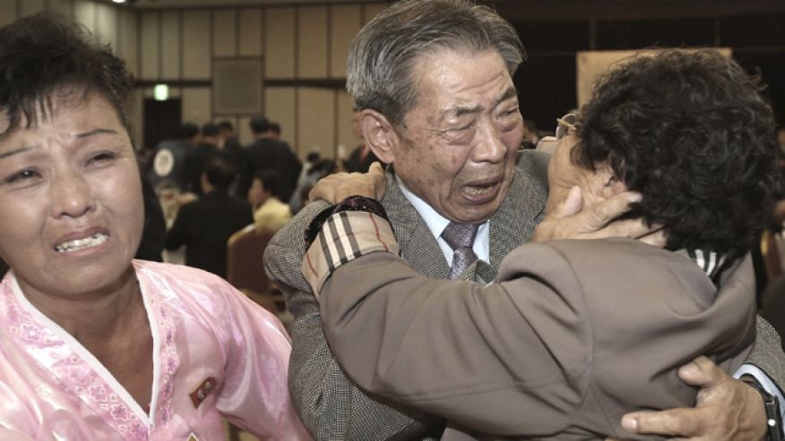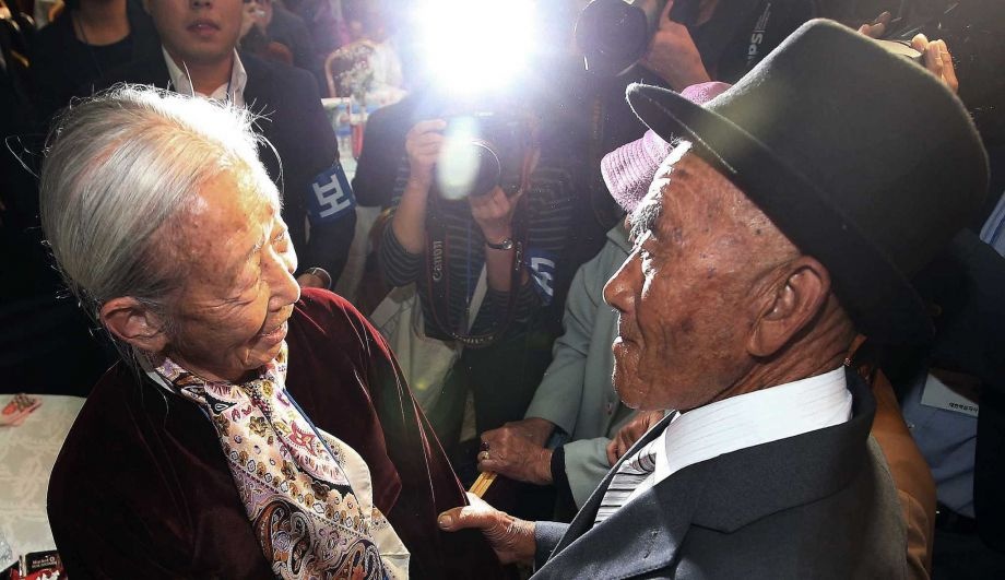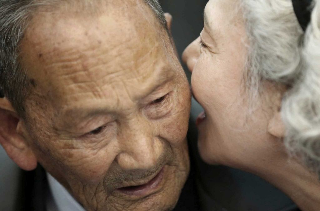 Bà Lee Jeong Suk hôn lên má người cha 88 tuổi, Ri Hung Jong. Cuộc đoàn tụ lần này là kết quả của một thoả thuận hồi tháng 8, sau một loạt xung đột diễn ra giữa hai miền bán đảo Triều Tiên. |