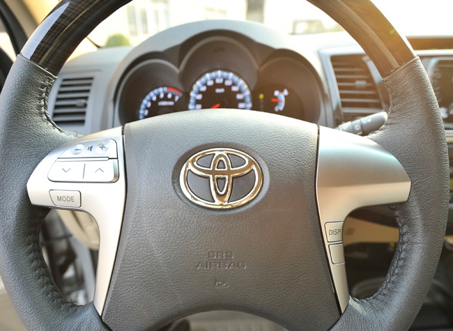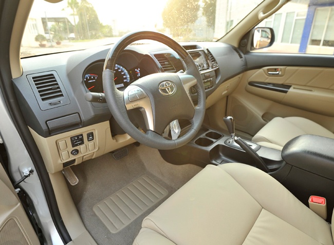 | Vô-lăng trên 2 xe mang phong cách khác nhau. Một bên thiết kế 3 chấu bọc da và tích hợp nhiều chức năng đáng chú ý như điện thoại rảnh tay, kiểm soát hành trình. Trong khi đó, vô-lăng của Fortuner được thiết kế 4 chấu, tích hợp một số phím bấm. |