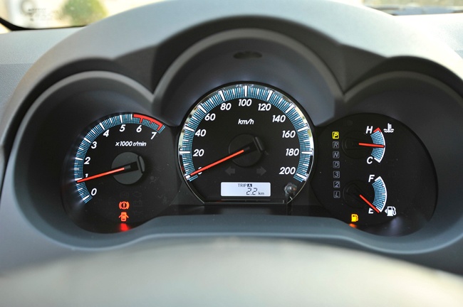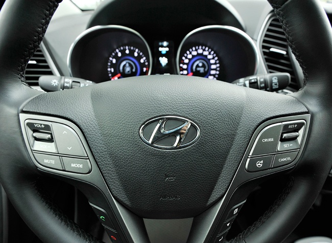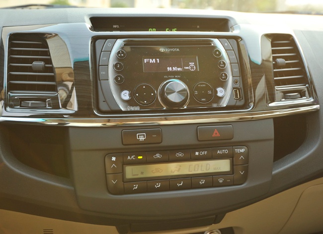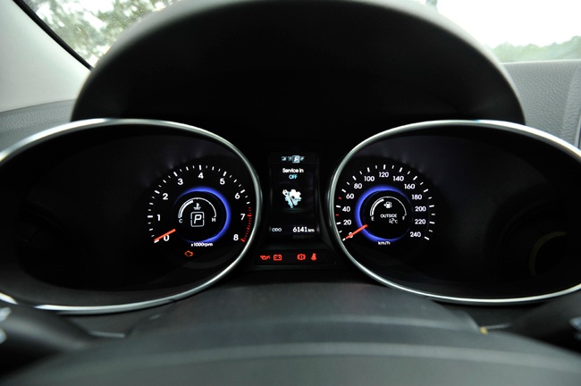 | Bảng đồng hồ trên Santa Fe thiết kế kiểu cách hơn so với kiểu đơn giản của Fortuner. |