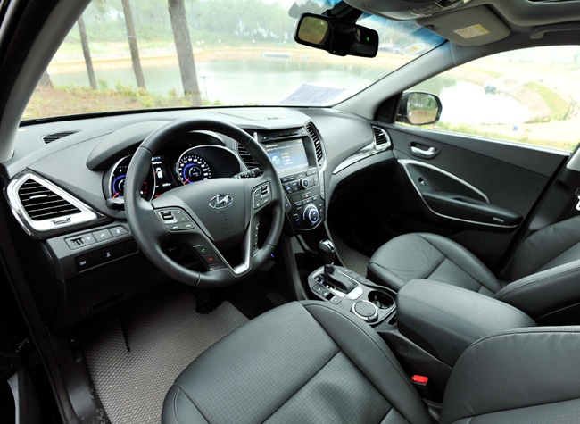 Nội thất và tiện nghi trên Santa Fe sang trọng và phong phú hơn so với Fortuner. Santa Fe sử dụng chất liệu da và nhựa cứng đen sần, bảng tap-lô với nhiều chi tiết mạ chrome bóng bảy, cửa sổ trời toàn cảnh. Trong khi đó, không gian cabin của Fortuner thiết kế đơn giản.