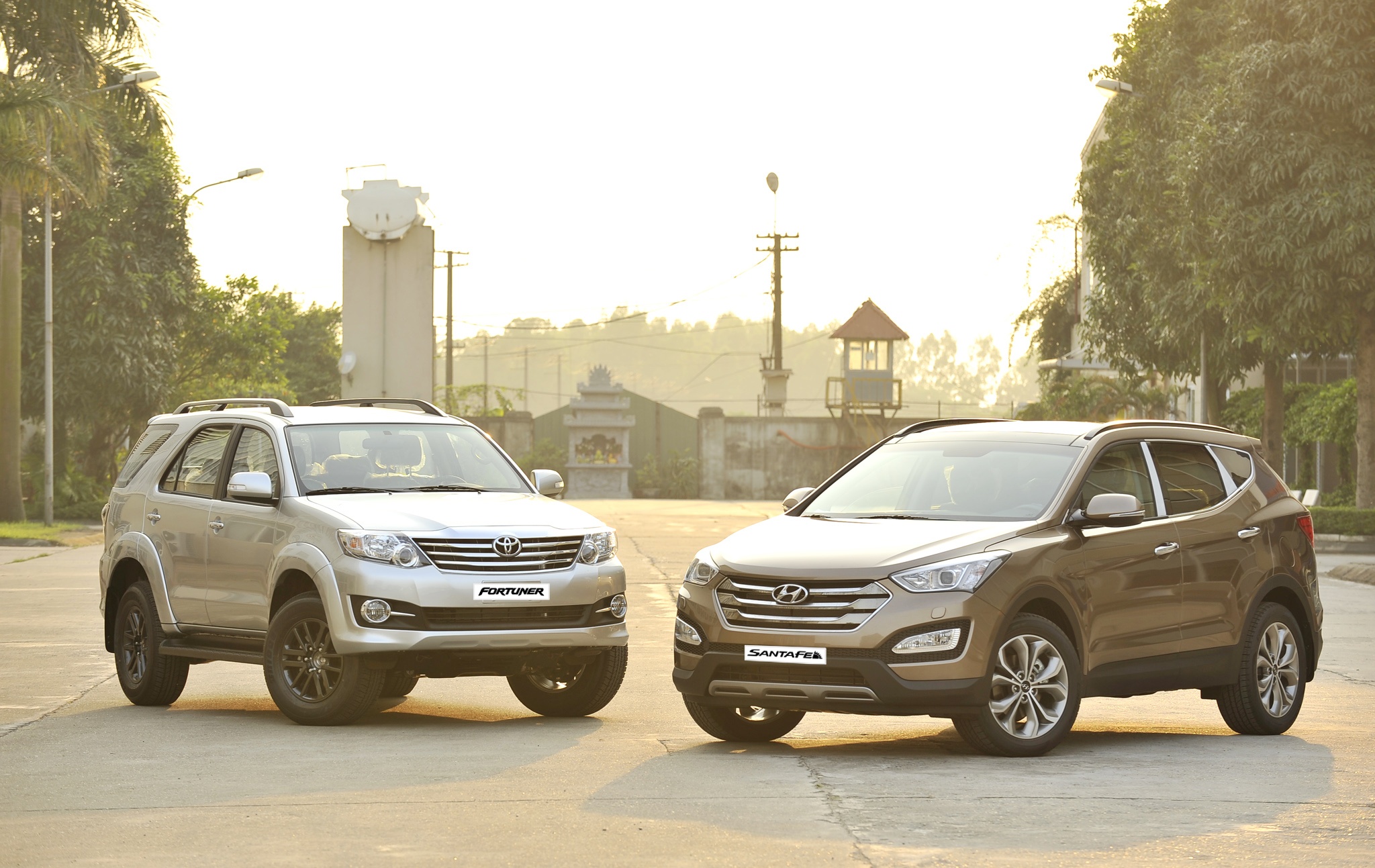 Trên thị trường ôtô Việt Nam, Fortuner đang là một trong những mẫu xe bán chạy nhất. Ở phân khúc SUV 7 chỗ giá khoảng 1 tỷ đồng, nếu như Mitsubishi Pajero Sport và Kia New Sorento tỏ ra yếu thế thì Hyundai Santa Fe nổi lên như một đối thủ đáng gờm, cạnh tranh trực tiếp với model của Toyota. Cả hai hiện đều được lắp ráp trong nước, tuy nhiên mỗi model đều mang giá trị, điểm mạnh và điểm yếu riêng. Với Fortuner, đó là giá trị thương hiệu, trong khi Santa Fe có tiện nghi và công nghệ hiện đại hơn.