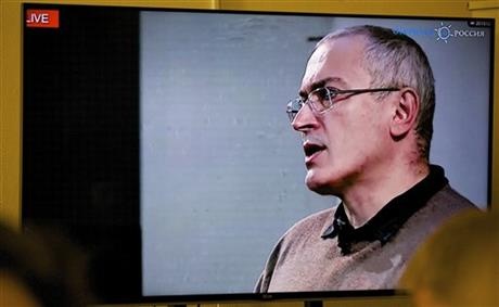 Ngay sau đó, Khodorkovsky mở cuộc họp báo tại London (Anh), lên án Tổng thống Vladimir Putin “đã đẩy nước Nga vào tình thế đòi hỏi phải có một cuộc cách mạng”. Ông chỉ trích Điện Kremlin “theo đuổi chính sách đối ngoại tự sát, áp dụng các điều luật phi pháp và truy tố công dân trong những tòa án tham nhũng”.