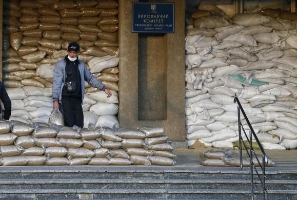 Cảnh tượng tương tự diễn ra bên ngoài một căn cứ không quân của Ukraina ở Kramatorsk. |