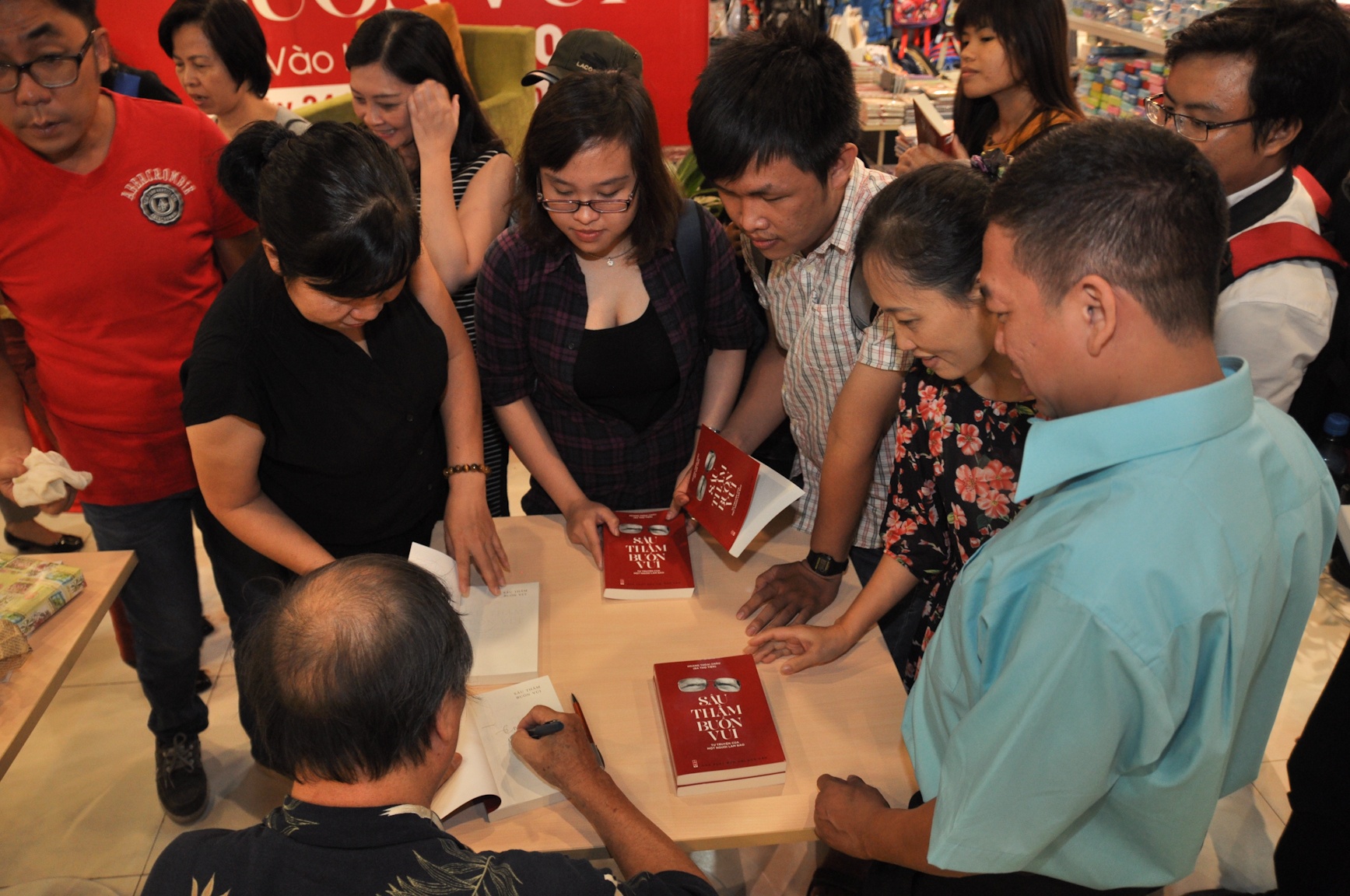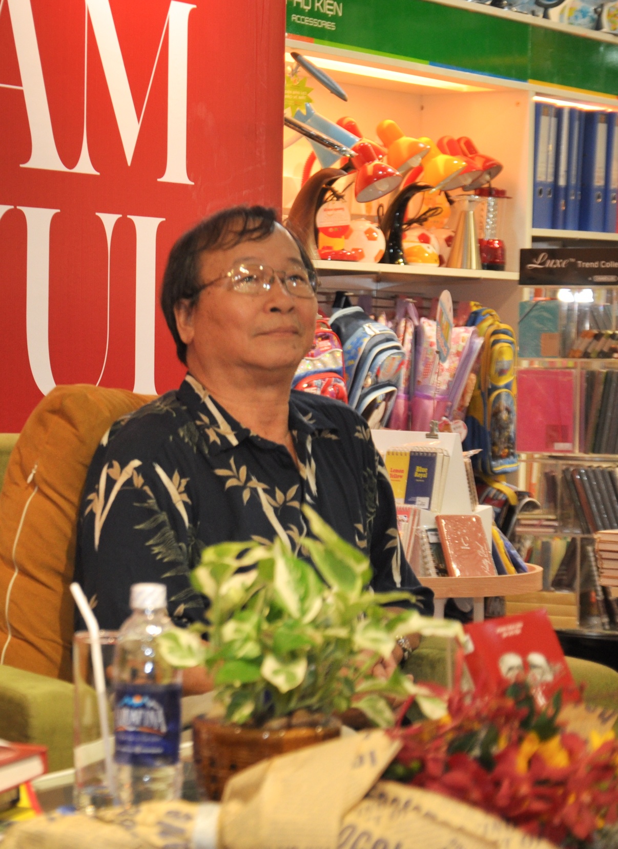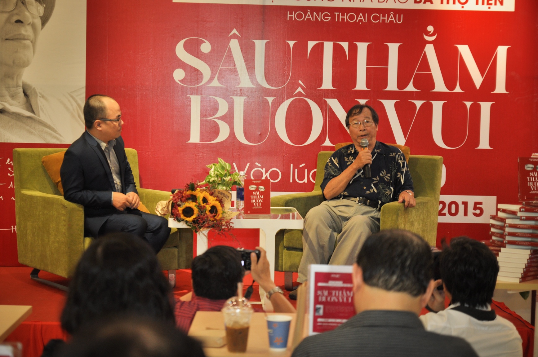 | Nhà báo Hoàng Thoại Châu bồi hồi nhớ chuyện quá khứ trong buổi ra mắt sách. |