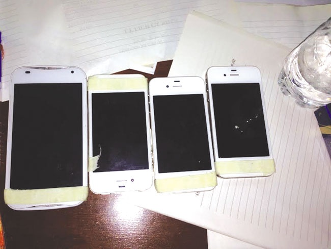 | Tang vật 4 điện thoại đắt tiền bị băng nhóm móc túi gây án cùng một buổi trưa 5/12. |