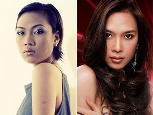 Mỹ Tâm trước kia (ảnh trái, năm 2000) mập mạp và kém thanh tú rất nhiều so với thời điểm năm 2006.