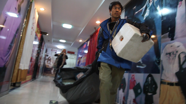 | Yang đang giao hàng trong một tòa nhà cao tầng ở Bắc Kinh. Ảnh: BBC. |