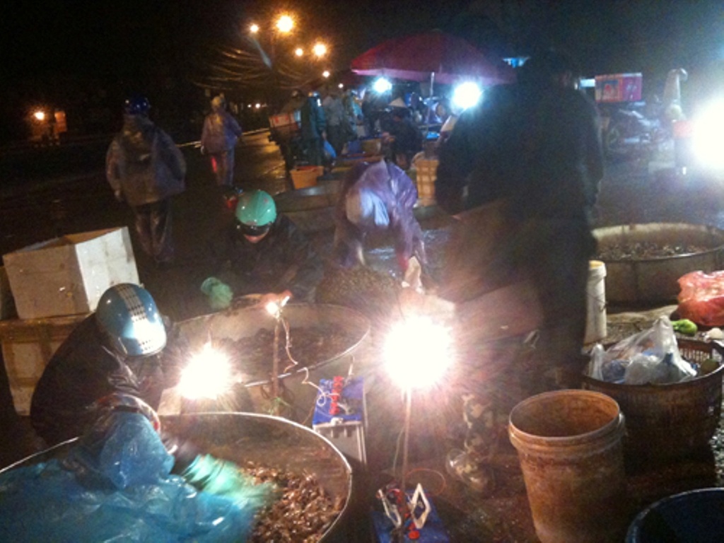 | Chợ đêm Long Biên - nơi có nhiều đứa trẻ mưu sinh. |