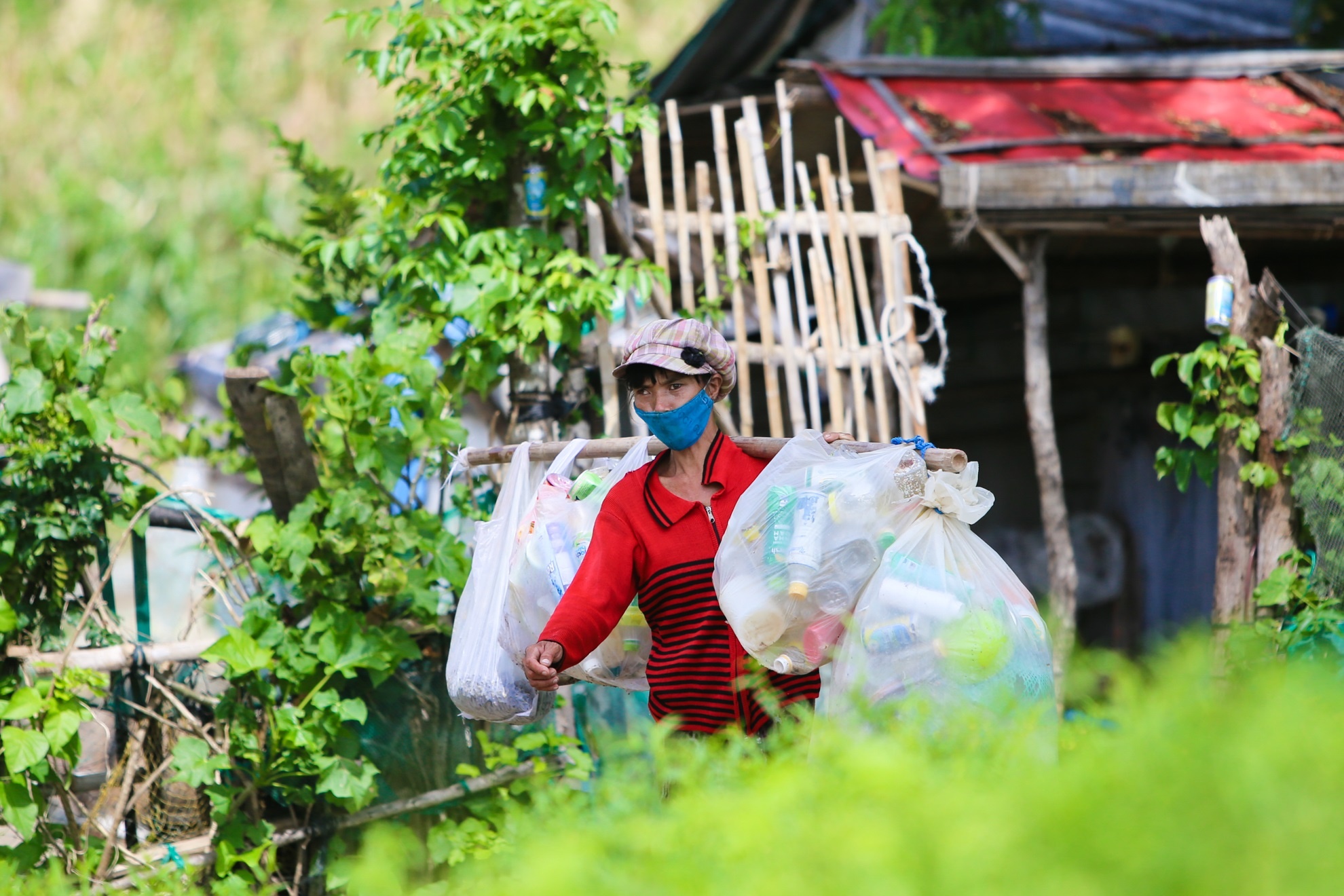 | Hàng ngày, chị Thu lang thang nhặt ve chai trên bãi biển, bãi rác hay những đồ thải tái chế do sóng đánh dạt vào bờ để bán kiếm sống qua ngày. Những lúc rảnh chị đi mò cua, ốc để có thêm chút tiền. Mẹ của Trốn cho biết, với số kinh phí 405.000 đồng/tháng trợ cấp người tàn tật của chị quá ít ỏi, không giúp được gia đình nhiều. |