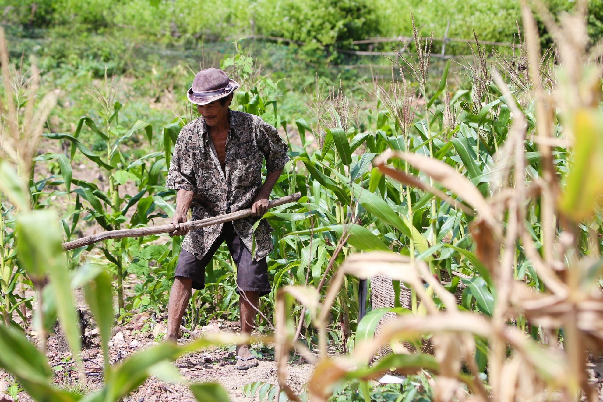 | Ông ngoại của bé Trốn còn phải cuốc đất làm vườn trồng rẫy bắp bán, kiếm thêm tiền lo cho con và cháu. Số tiền trợ cấp cao tuổi 215.000 đồng/tháng không đủ để ông lo cho cuộc sống 3 miệng ăn. |