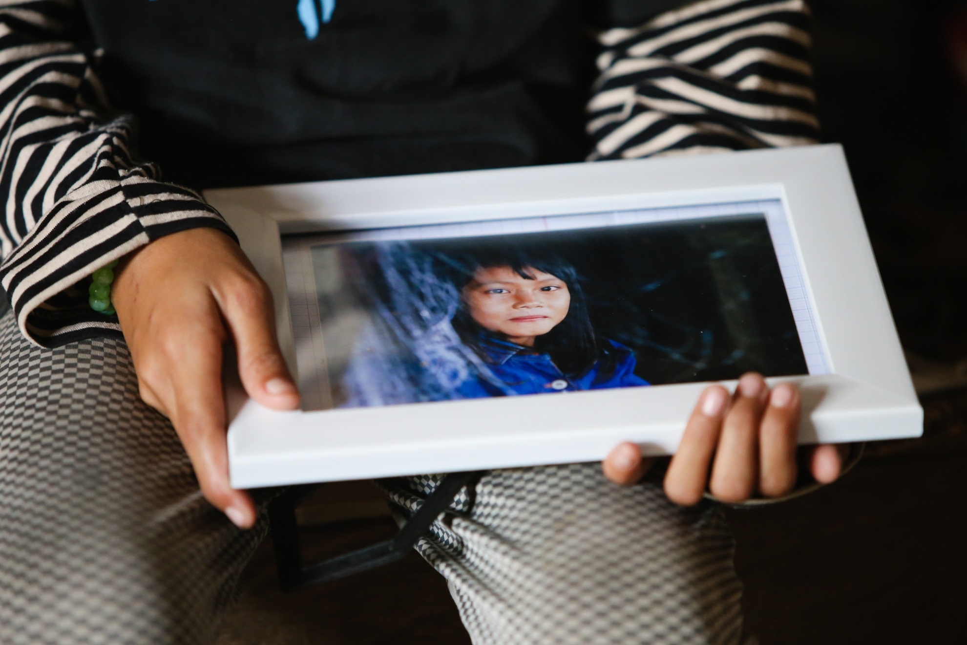 | Một trong những đồ chơi mà cô bé nâng niu, đó là chiếc khung có tấm ảnh chân dung mình do một khách du lịch ghé chơi vừa chụp tặng làm kỷ niệm. |