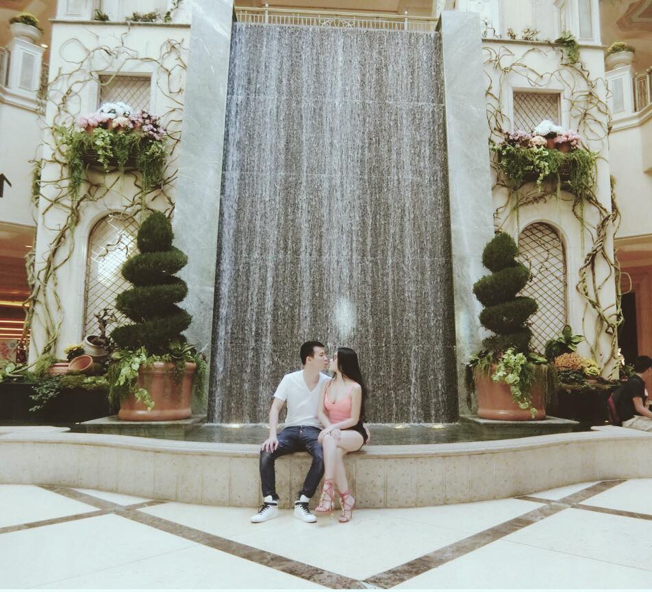 | Cô chụp ảnh thân mật cùng ông xã. Chồng của Huyền là một đại gia khá có tiếng tại Hà Nội. Anh là ông chủ của một chuỗi khách sạn sang trọng tại Hà Nội và TP HCM. |