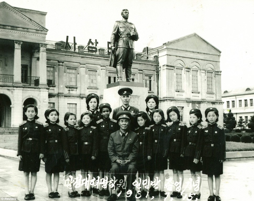 Sau khi cha chết, một máy bay đưa Monique Macias, mẹ, anh trai và chị gái của cô tới thành phố Bình Nhưỡng. Chính phủ Triều Tiên đưa ba đứa trẻ châu Phi vào trường Cách mạng Mangyongdae. Trong bức ảnh mà người ta chụp vào năm 1981, Monique đứng bên phải hiệu trưởng của trường. Ảnh: Reuters.