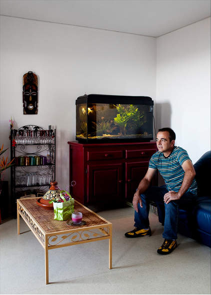 | Marc trong căn hộ của anh tại vùng La Londe-les-Maures, Pháp. Anh là một phi công. |