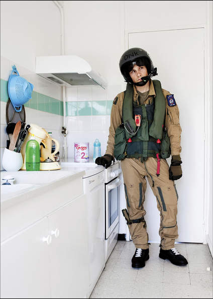 Bộ ảnh của nhiếp ảnh gia Pháp thể hiện bức tranh cuộc sống với chú hề cũng có những lúc tĩnh lặng và suy tư, một phi công dũng mãnh cũng là một người giản dị trong phòng bếp.