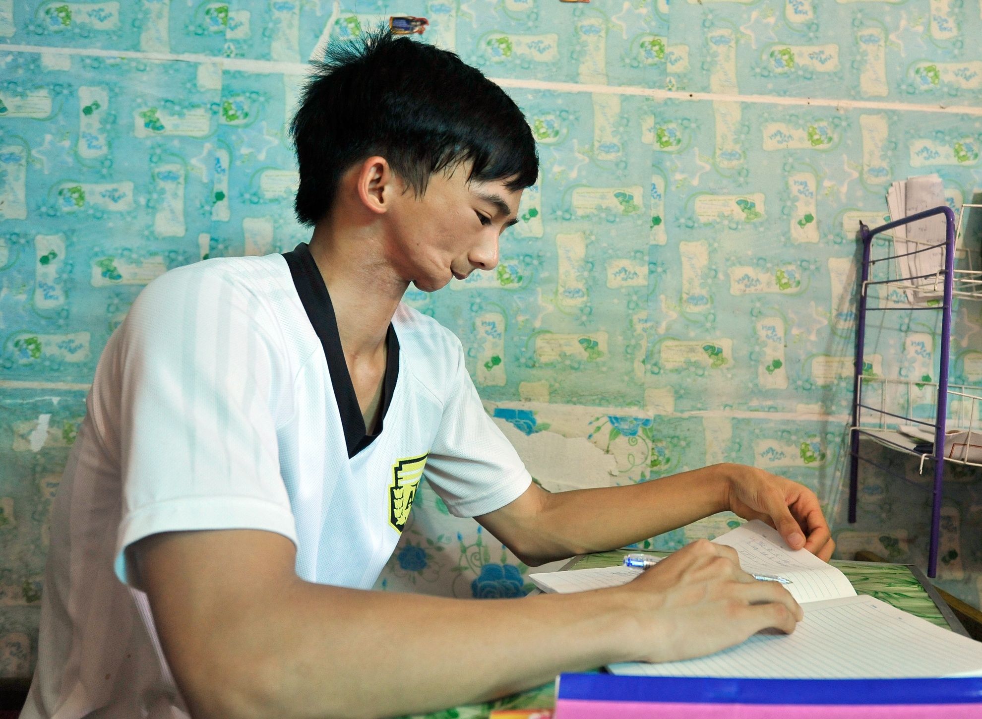 Thắng đỗ đại học với số điểm 14,5. Hàng ngày sau giờ lên lớp, em lại đi bộ về căn nhà trọ thuê với giá 250.000 đồng/tháng. Căn phòng 12 m2 này nằm cách trường 1 km. Quãng đường từ nhà Thắng tới trường hơn 15 km. Hoàn cảnh gia đình khó khăn, nếu đi xe buýt phải qua 2 tuyến và ảnh hưởng tới sức khỏe nên từ thứ 2 đến thứ 6 hàng tuần em sinh hoạt và ở tại nhà trọ.