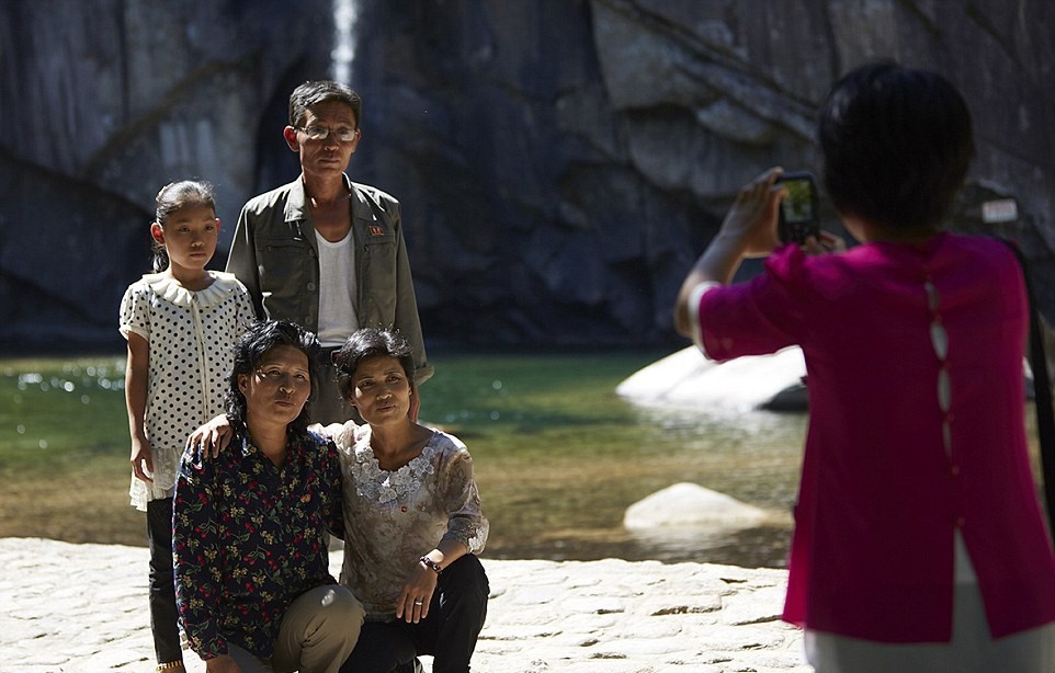 | Người mẹ chụp ảnh cho con gái bằng điện thoại thông minh. Người dân Triều Tiên đã bắt đầu chú ý tới điện thoại. |