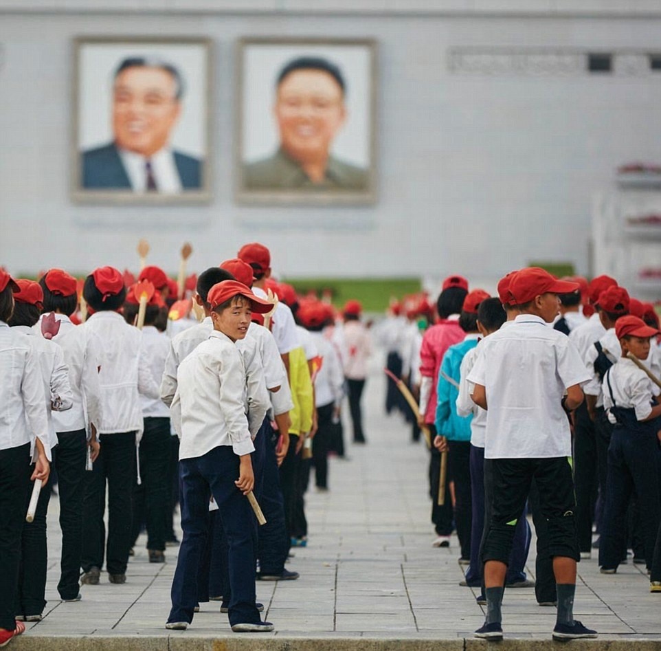 | Những cậu bé chuẩn bị cho một cuộc diễu hành để kỷ niệm ngày thành lập Đảng Lao động Triều Tiên ngày 10/10. |