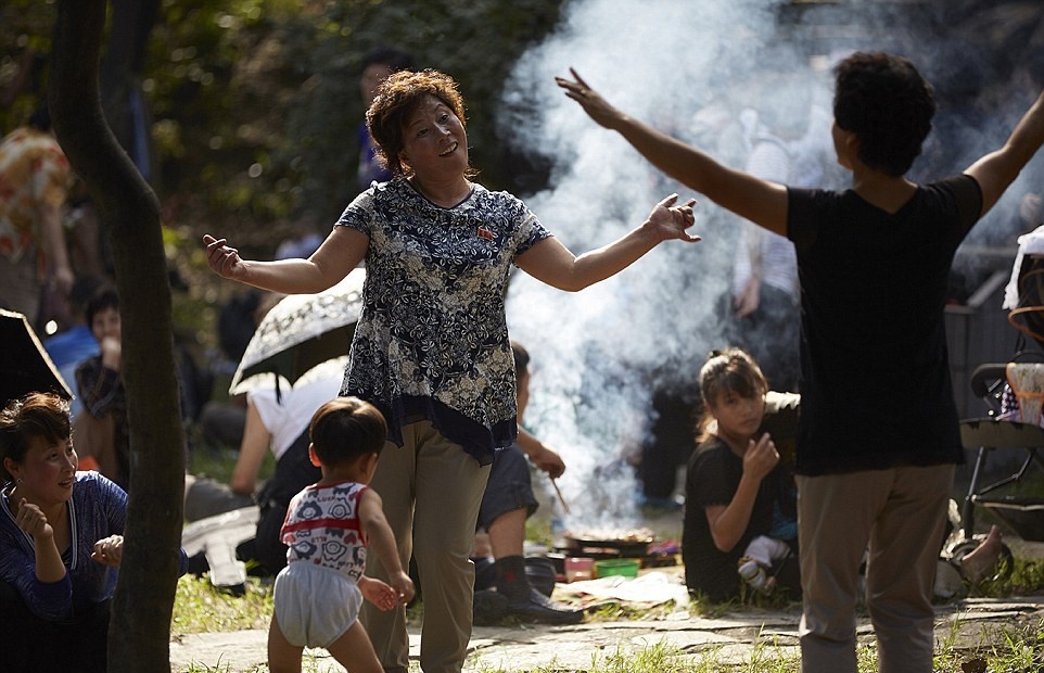 | Một nhóm đàn ông và phụ nữ nhảy múa trong ngày Quốc khánh. |