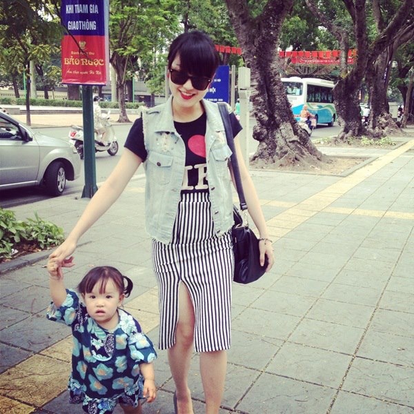 Cô thường xuyên cập nhật hình ảnh hai mẹ con lên trang cá nhân và nhận
