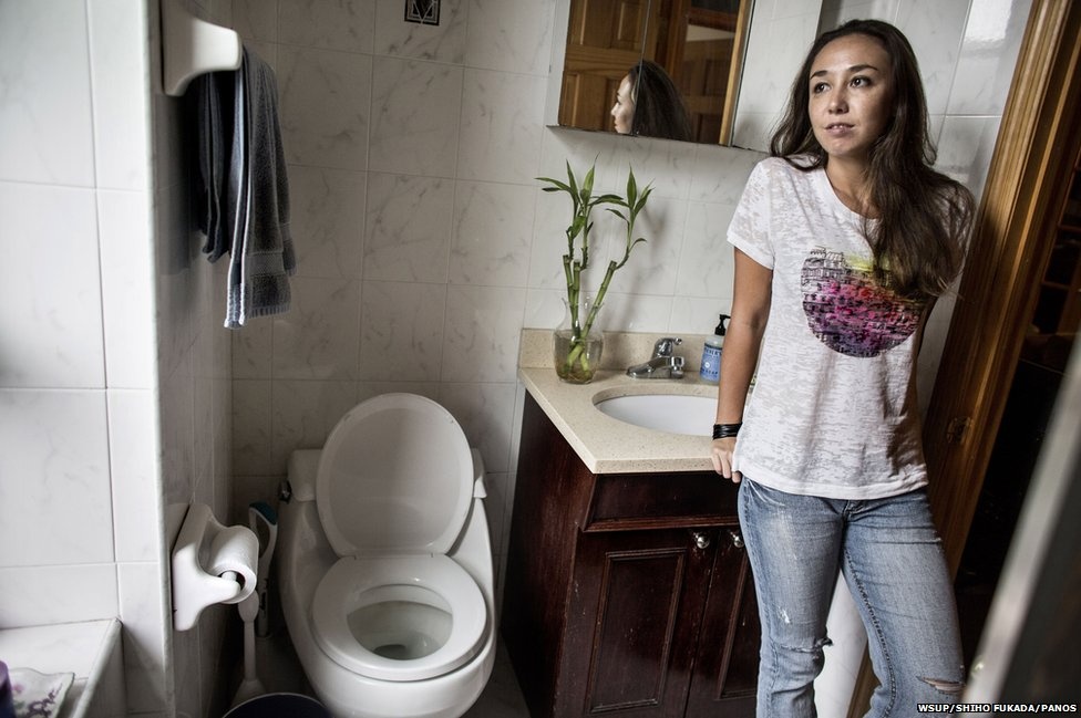 | Isabela, 33 tuổi, đang sống trong căn hộ áp mái ở Rio de Janeiro, Brazil. Cô sở hữu một bằng MBA về luật môi trường và là một nghệ sĩ. "Nhà vệ sinh sạch khiến tôi cảm thấy thoải mái. Tuy nhiên, tôi biết đằng sau nó là hệ thống cấp thoát nước, sự ô nhiễm hồ và đại dương do các chất thải. Với một cô gái Brazil như tôi, có một vòi hoa sen tốt, một nguồn cung cấp nước sạch, nước nóng để sử dụng và chỗ ngồi vô cùng thoải mái trên chiếc bồn cầu là điều rất tốt. Tôi biết đó là một đặc ân nhưng cũng là một sự lãng phí không nhỏ", Isabela chia sẻ. Ảnh: BBC |