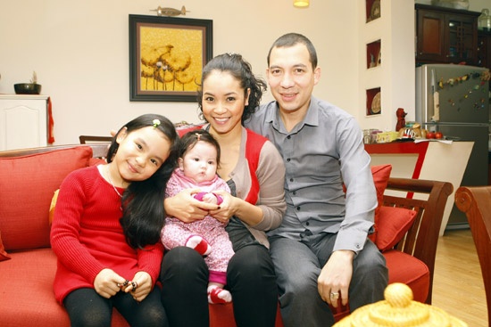 | Vợ chồng Xuân Nhị - Quốc Bình bên các con. |