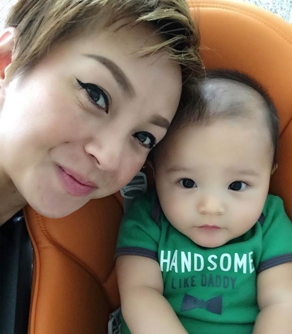 | Nguyệt Anh và cậu con trai nhỏ. |