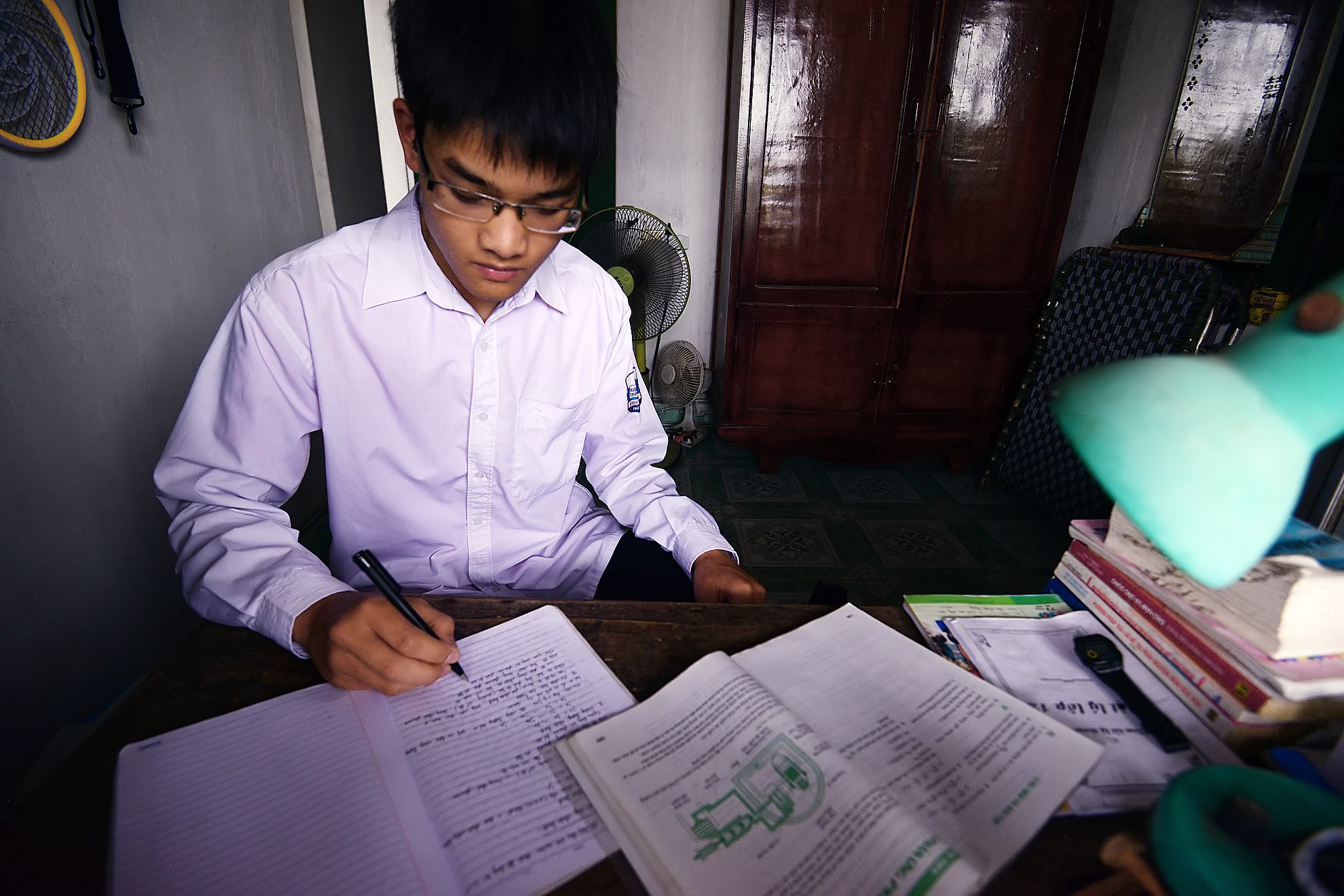 Ông Bùi Xuân Thái, bố của Thắng, bảo: "Trong những lúc khó khăn, con người mới có thêm ý chí phấn đấu và nỗ lực. Tôi luôn nói với con, chỉ có học mới thoát nghèo khó".