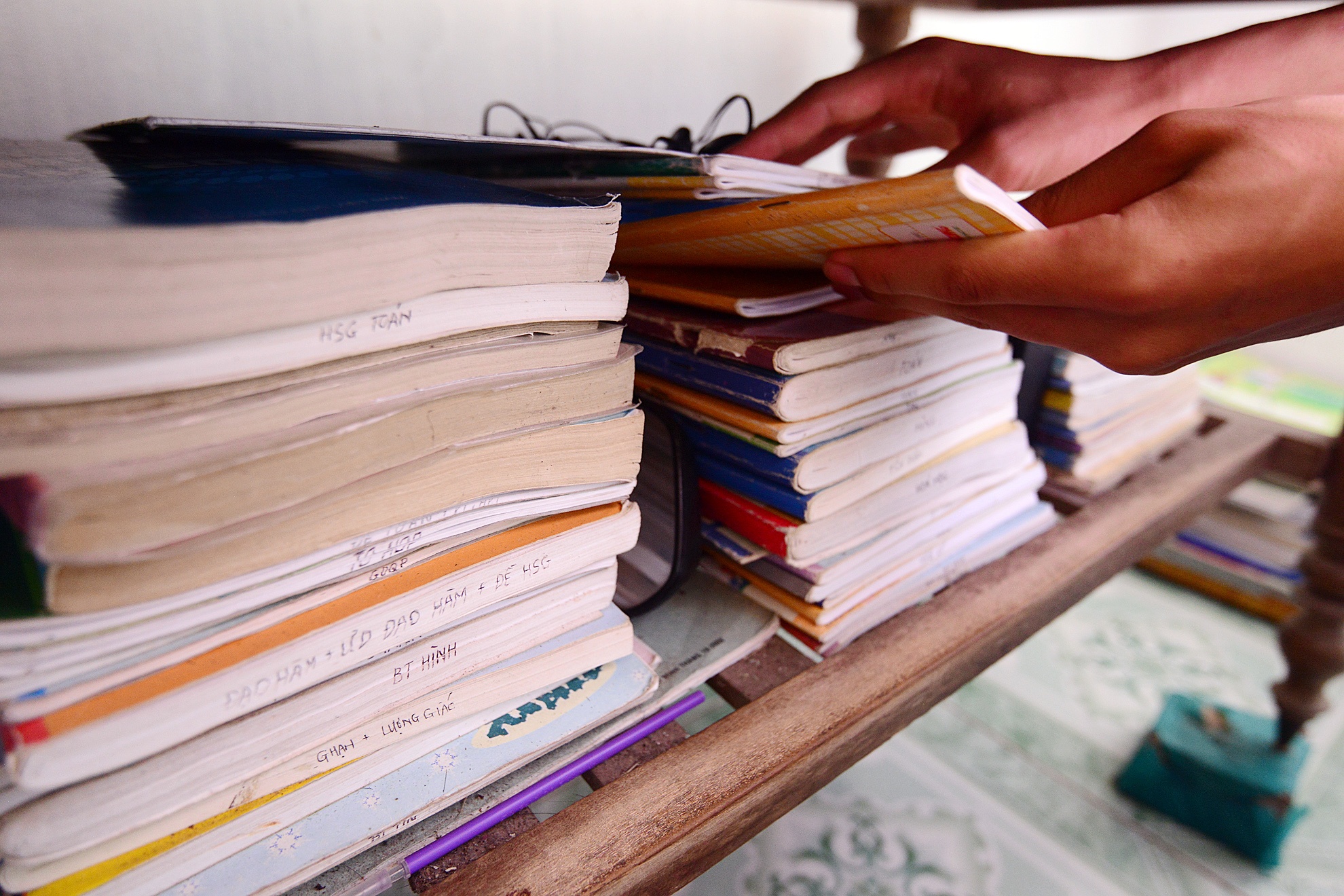 Mẹ Thắng làm nghề nông, bố là thợ xây, cuộc sống còn nhiều khó khăn, nhưng chàng trai nghèo rất luôn cố gắng học giỏi. Góc học tập đơn sơ của chàng thủ khoa quê Thái Bình có nhiều sách cũ mượn, xin của anh chị đi trước.
