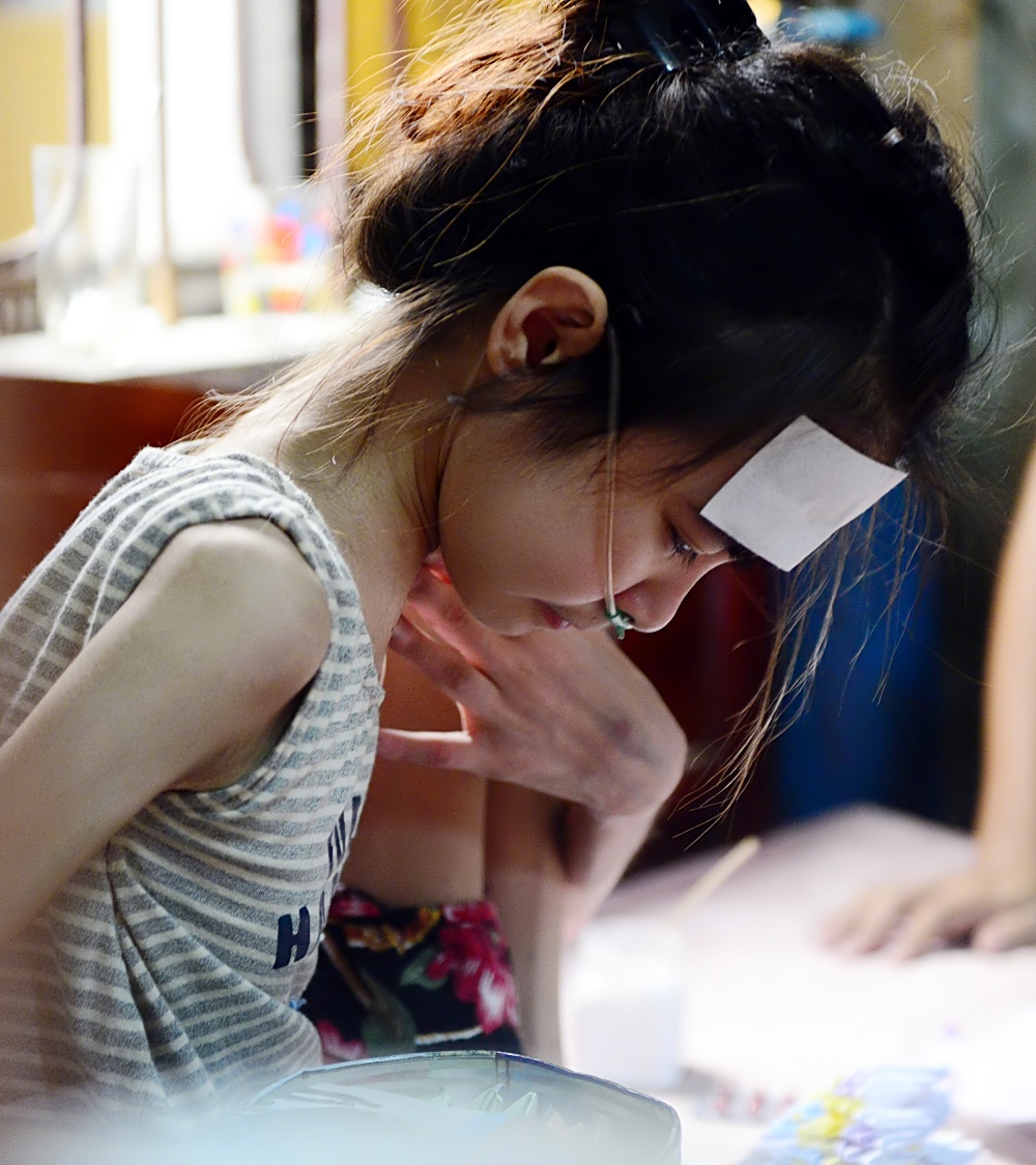 Thuốc thang, bệnh tật lấy đi sức khỏe của Tuyết Nhi, khiến cơ thể em gầy gò, thiếu cân. Hàng ngày, em phải sống chung những cơn thở dốc, ho khan và sốt triền miên.