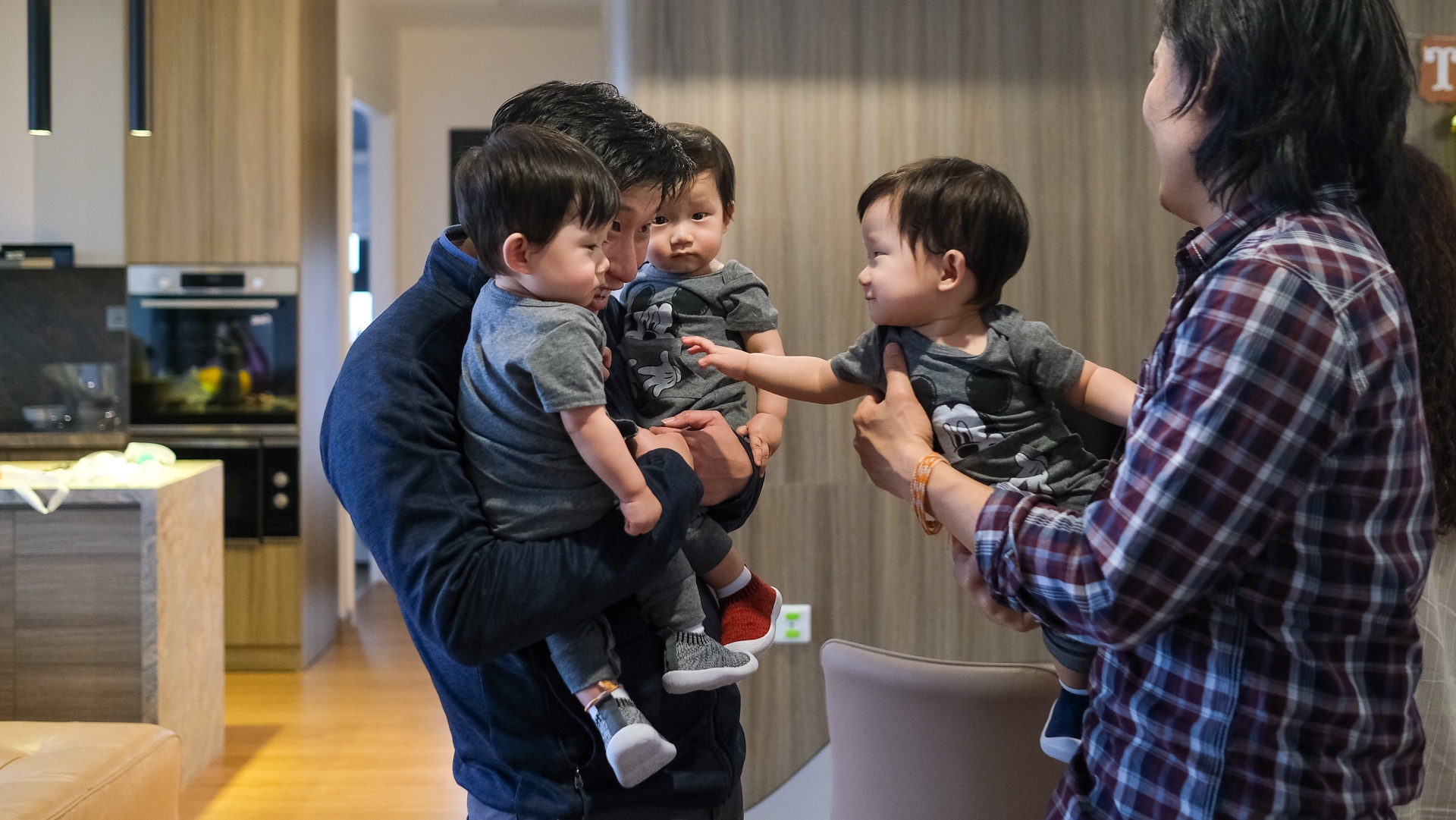 | Làm bố của 3 nhóc tì cũng là lúc tôi phải cố gắng cân bằng giữa cả hai khía cạnh gia đình và sự nghiệp. Hàng ngày, tôi tranh thủ dậy sớm chuẩn bị, thay tã, pha sữa cho con để vợ có thêm thời gian ngủ. Xong xuôi, tôi lái xe đến văn phòng. |