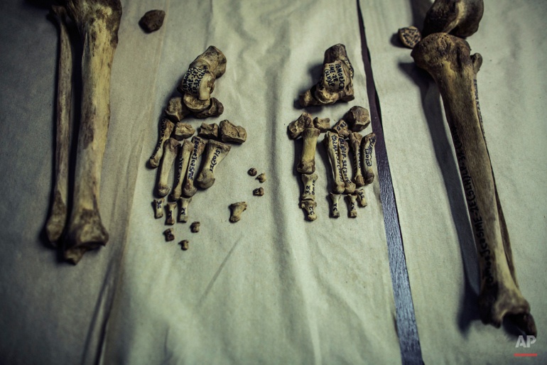 Bộ hài cốt của một người đàn ông chưa thể nhận diện. Nhiều nạn nhân được phát hiện trong tình trạng phân hủy nghiêm trọng, tới mức không thể xác định nhân thân. |