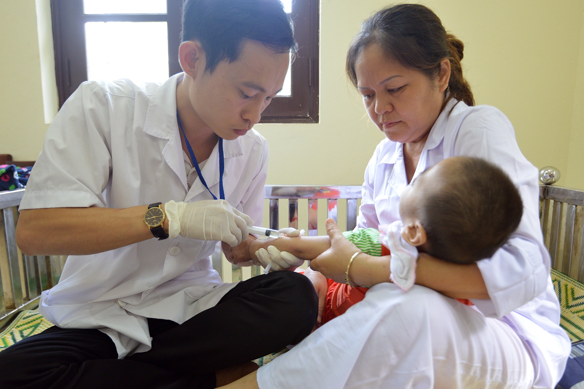 | Các nhân viên y tế của trung tâm chăm sóc các trẻ. "Hễ có dấu hiệu bị bệnh là chúng tôi có mặt", nhân viên y tế này cho biết. |