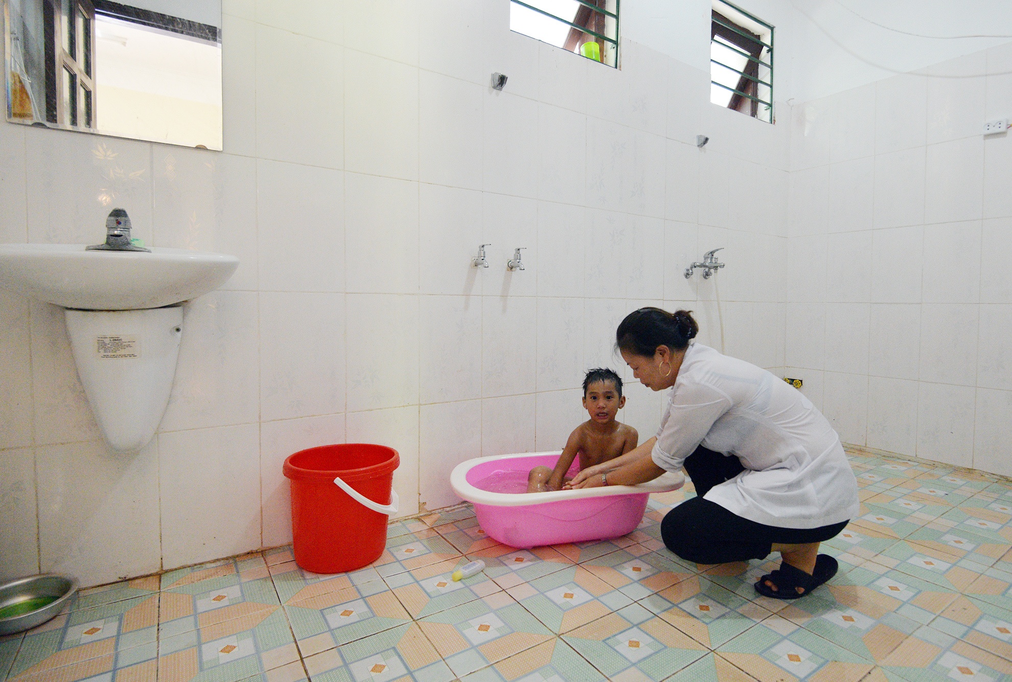 | "Bọn trẻ rất thích tắm rửa, chắc chỉ có lúc này các em mới không nghịch ngợm thôi", một nữ nhân viên nói. |