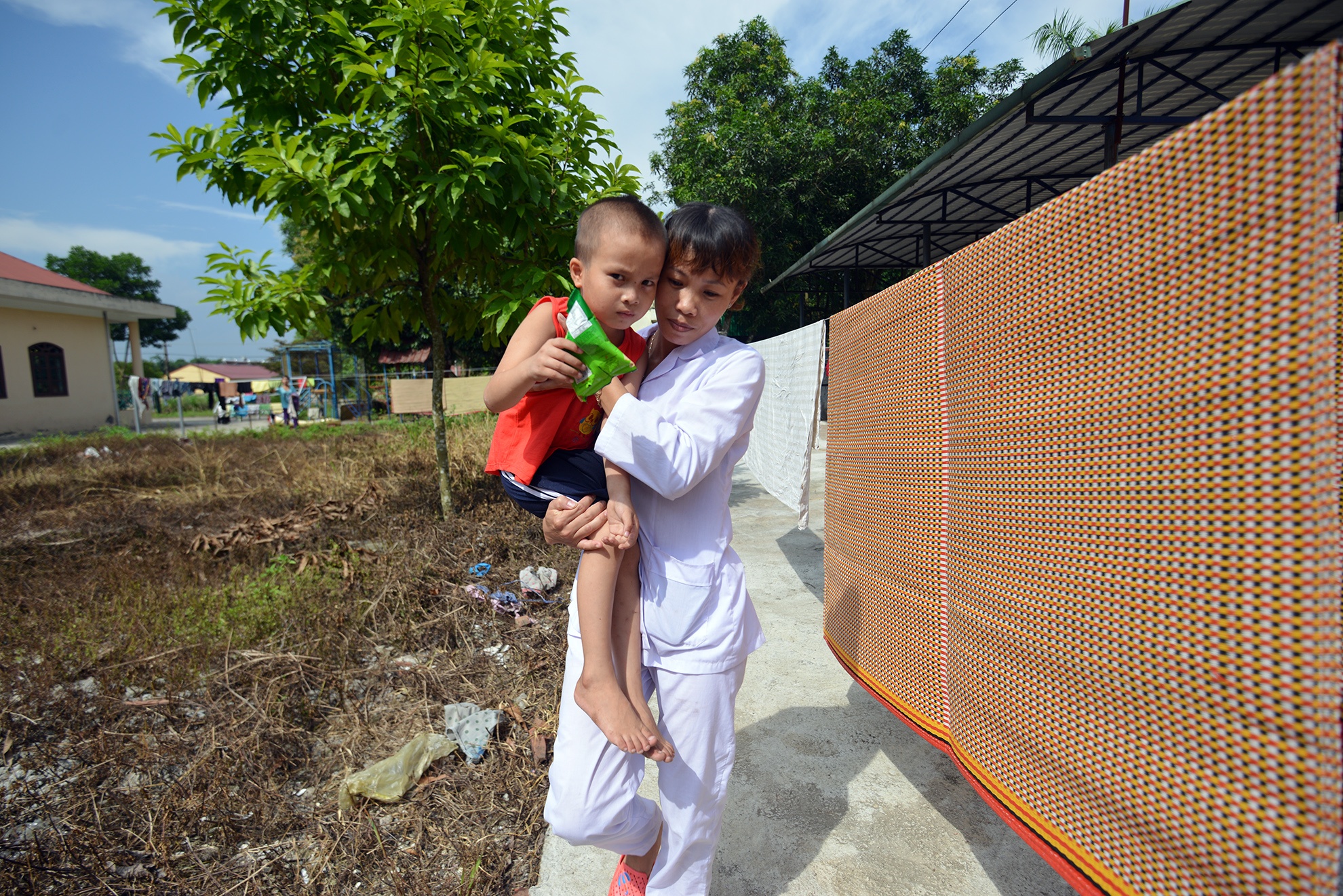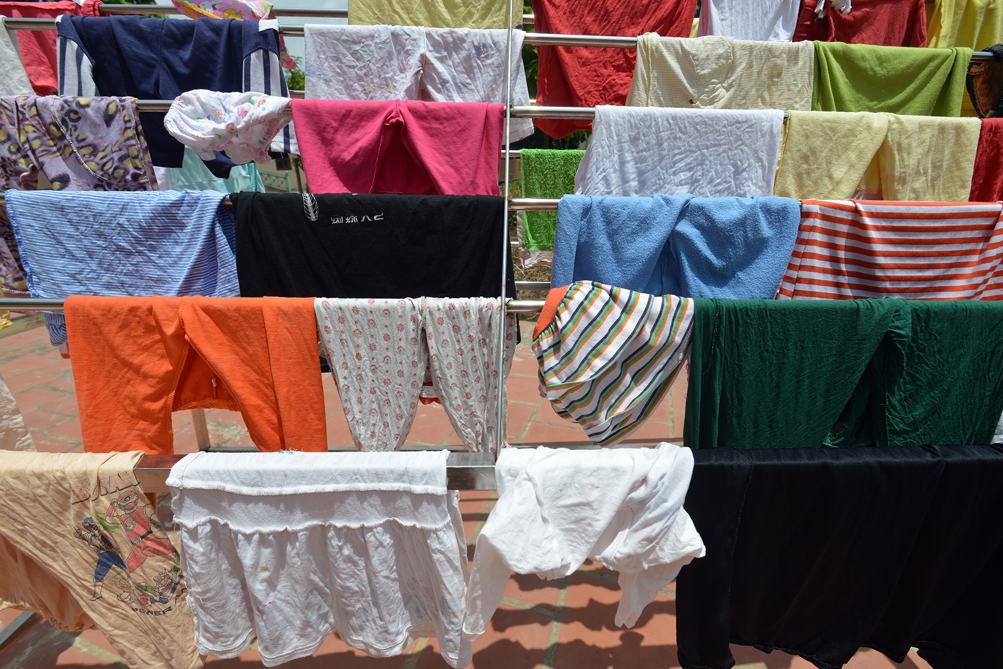 | Quần áo các em được phân loại và phơi phóng cẩn thận ở ngoài sân trung tâm. |