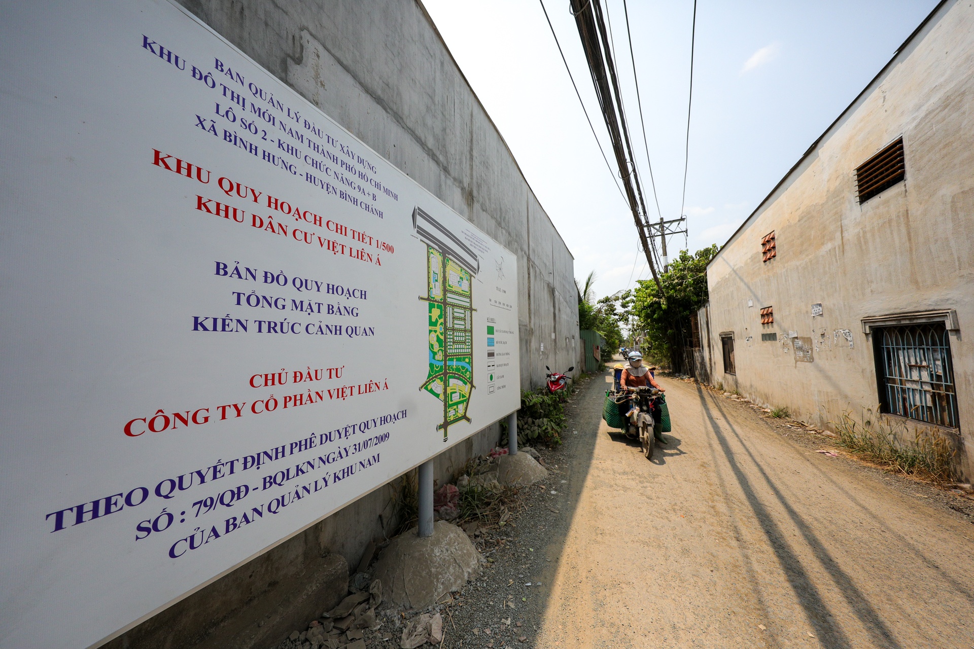 | Cách đó không xa, dự án khu dân cư Việt Liên Á (ấp 3, xã Bình Hưng, Huyện Bình Chánh, TP.HCM) cũng trong tình trạng quy hoạch treo hàng chục năm. Người dân ở đây sống tạm bợ trong những ngôi nhà tranh hoặc cấp 4 do bị cấm xây dựng, sửa sang nhà cửa. |
