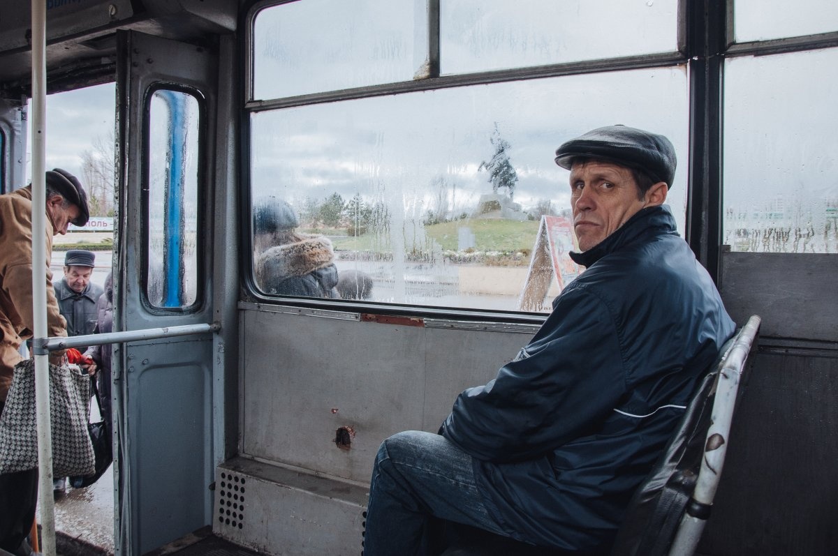 | Một người đàn ông đi xe buýt ở Tiraspol. Về mặt tổ chức chính quyền, Transnistria vẫn có các bộ ngành, cơ quan hành pháp, kiểm soát biên giới... |