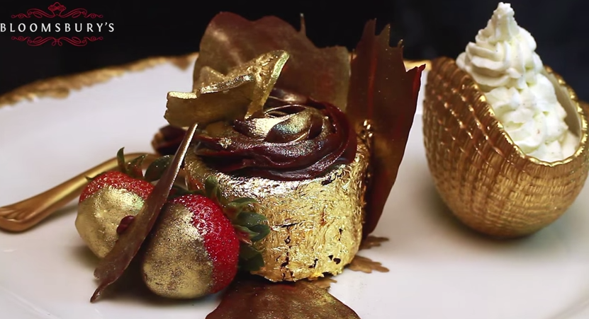| Bánh cupcake 1.000 USD: Golden Phoenix của Bloomsbury là một trong những chiếc bánh đắt nhất thế giới, với giá lên tới 1.000 USD. Bánh làm từ chocolate Italy, đậu vani Uganda, và dâu tây nhúng vàng ăn được. Ảnh: Foodworldnews.
