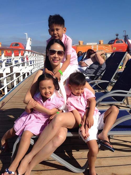 | 'Người bạn đồng hành' của chị trong các chuyến đi là hai con trai đáng yêu. Hai bé Vương Khang và Vương Khôi rất thích thú khi được mẹ đưa đi nhiều nơi. |