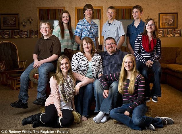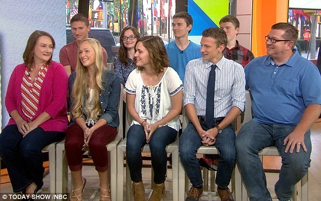 Sau 18 năm, 7 chị em đã tốt nghiệp trung học. Cô gái ngồi hàng đầu tiên, áo kẻ là chị cả Mikayla (hơn 7 người em một tuổi).