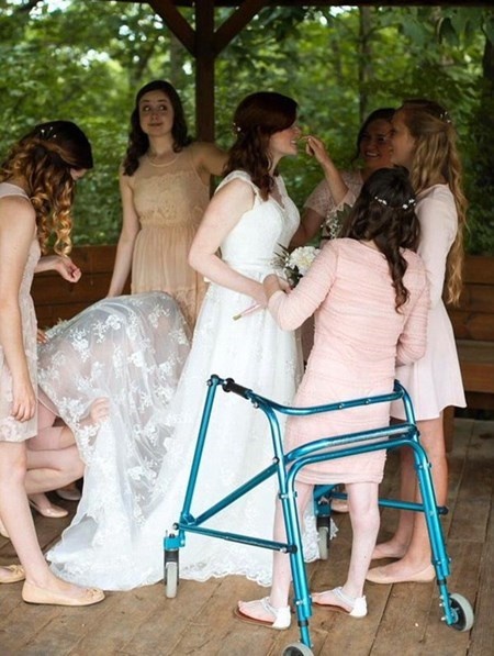 Chị cả Mikayla, 19 tuổi, cùng các em gái trong lễ kết hôn. Natalie, Alexis và Kelsey là những phù dâu xinh đẹp.