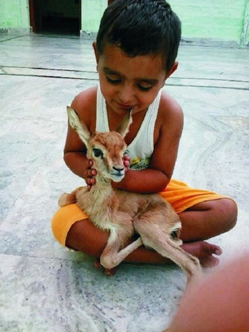 | Một phụ nữ Bishnoi cho thú rừng bú chung với con của mình. |