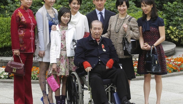 4 đời vợ và 17 đứa con là 'gia tài' cá nhân của tỷ phú Hồng Kông. Mặc dù vậy, không chắc chắn tất cả 4 người vợ này đều đăng ký kết hôn theo luật pháp. 1 trong 17 đứa con của ông đã qua đời vào năm 2004, còn 2 người vẫn đang kinh doanh các sòng bạc. |